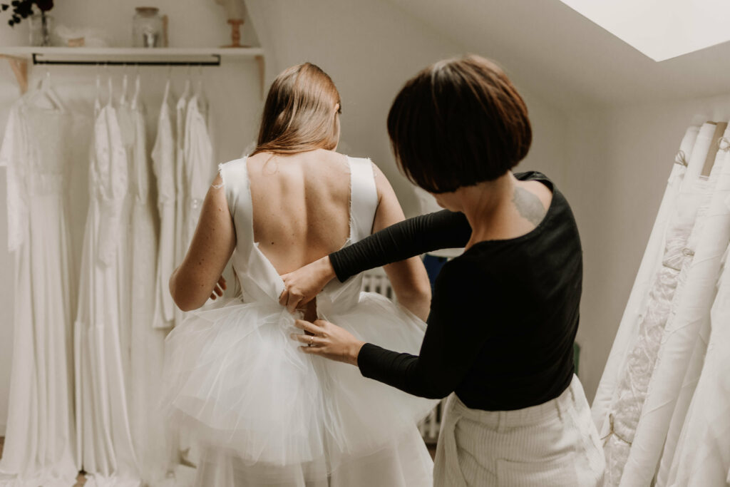 Poussez la porte et ensemble découvrons les coulisses de mon atelier. C’est ici que naissent les idées pour vos robes, que les plus belles matières s’entrelacent et que les robes prennent vie pour devenir la Robe de Mariée de vos rêves.