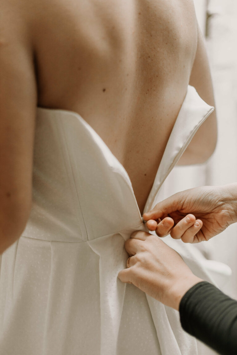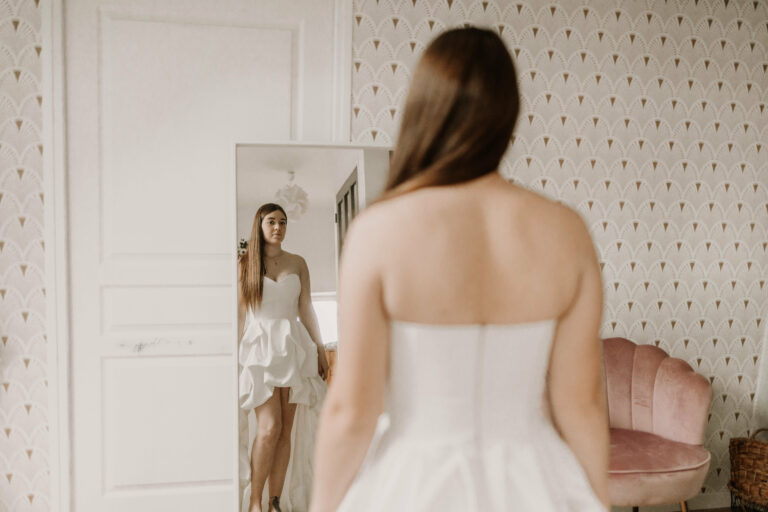 Quelques semaines avant le mariage, un dernier essayage permet d’effectuer les ajustements finaux. Votre robe est alors prête à vous accompagner le jour J.